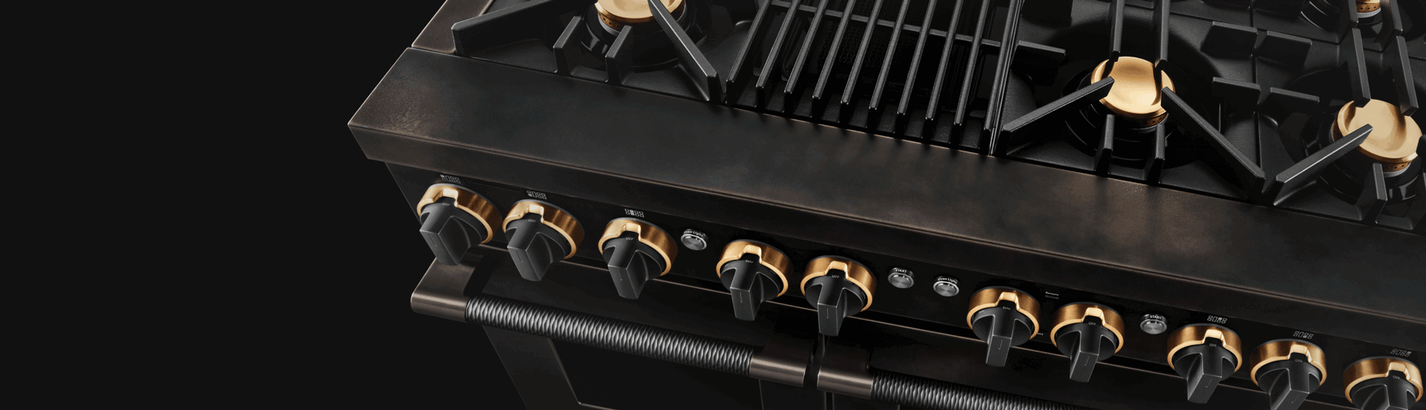 Ascending from the ashes of old luxury, the Smoke & Brass Professional-Style Range boasts a one-of-a-kind distressed finish that showcases the seared heart of the JennAir progressive soul.