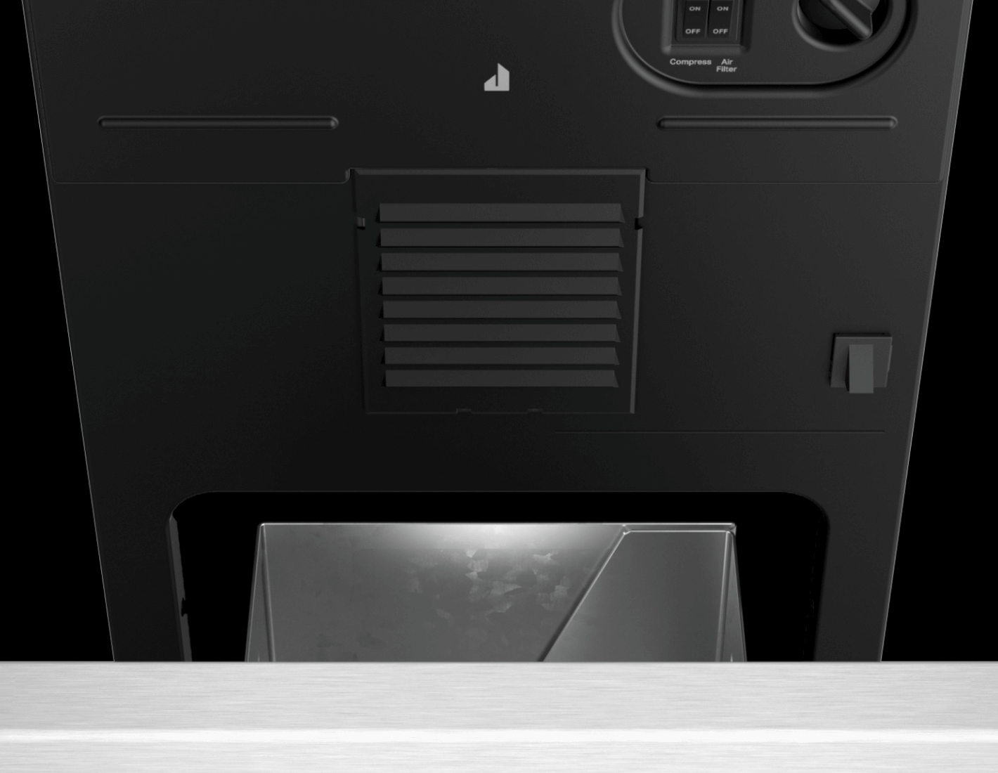 Extends the full length of the compactor, combining aesthetics with responsiveness. A full press opens, a slight press starts.
