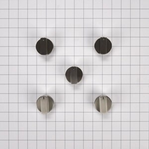Model W10678586 Gas Cooktop Control Knob Set controls the heat of the appliance's surface burners and transforms the appearance of your Jenn-Air® gas cooktop to match other Pro-Style® kitchen appliances. This set includes (5) stainless steel knobs; each measures approx. 2-IN diameter. This knob set is designed to be used with select stainless steel JennAir® gas cooktops; check to see if your model number is compatible. Replacing this part will require no tools, disassembly, or repair experience.