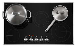 Beneath the sleek, black cooktop surface, fast-heating elements deliver heat upon command.