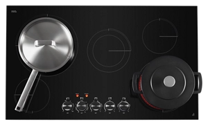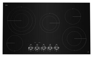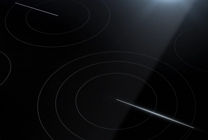 Beneath the sleek, black cooktop surface, fast-heating elements deliver heat upon command.