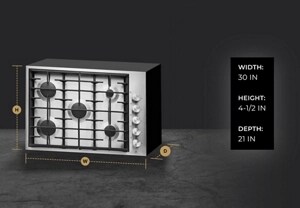 White indicator light glows indicating when a burner is on, providing a modern look and a convenient reminder for cooks.