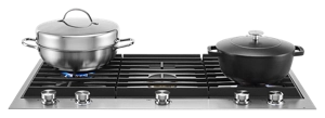 With a 20,000 BTU dual-stacked PowerBurner and a Simmer/Melt Burner reaching as low as 900 BTUs, this Jenn-Air® gas cooktop is perfect for precision cooking. Luxury features include brass burners and backlit knobs which enhance the extremely low- profile design that provides a minimal look or near-flush installation with your countertop.