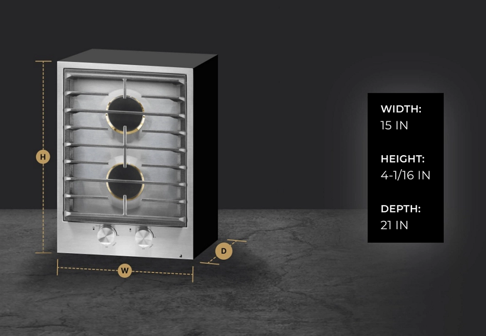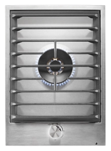 The burner on this gas cooktop delivers up to 20,000 BTUs. The space-saving 15-inch wide design allows the cooktop to be paired with a 30- or 36-inch gas cooktop or with our 2-burner gas cooktop. Other coordinating features include brass burners and backlit knobs which enhance the extremely low-profile design that provides a minimal look or near-flush installation with your countertop.