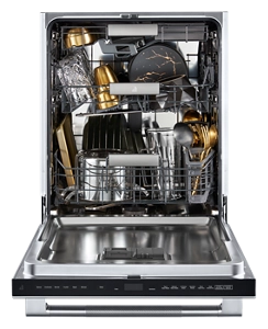 A JennAir® signature, these dramatic black racks are inspired by the beauty of volcanic glass—showcasing clean dishes in striking contrast.