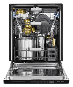 Three pressure-optimizing stainless steel wash arms deliver powerful cleaning spray to cookware and dishes, cleaning them effectively.