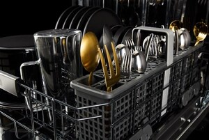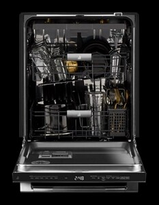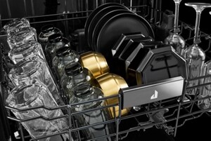 A JennAir® signature, these dramatic black racks are inspired by the beauty of volcanic glass—showcasing clean dishes in striking contrast.