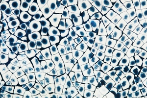 This finish reimagines fragile eggshell fragments into an eclectic, asymmetric pattern. The rich sapphire color adds luxury and playful whimsy to any maximalist space, pairing well with cool tones, blue cabinetry and a hint of brass.