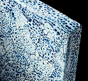A skillfully crafted panel made in collaboration with Nature Squared and designed to fit on a JennAir® Wine Column. This finish arranges fragile eggshell fragments into an assymetrical pattern with a rich sapphire color.