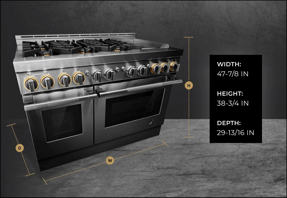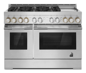 Precise, dual flames produced by precision-drilled brass burners. Inside the oven cavity, steady heat weaves around each flat tine. From searing select cuts and simmering sauces to succulent roasts, these ranges offer unmistakable firepower.
