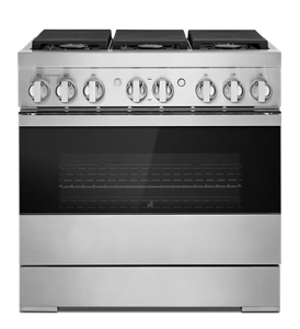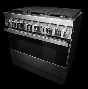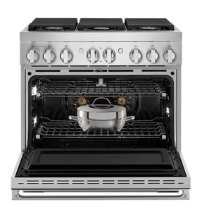 Precise, dual flames produced by precision-drilled brass burners. Inside the oven cavity, steady heat weaves around each flat tine. From searing select cuts and simmering sauces to succulent roasts, these ranges offer unmistakable firepower.
