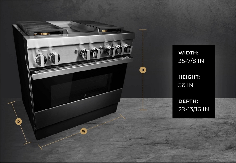 NOIR™ 36" Dual-Fuel Professional-Style Range with Chrome-Infused Griddle and Steam Assist