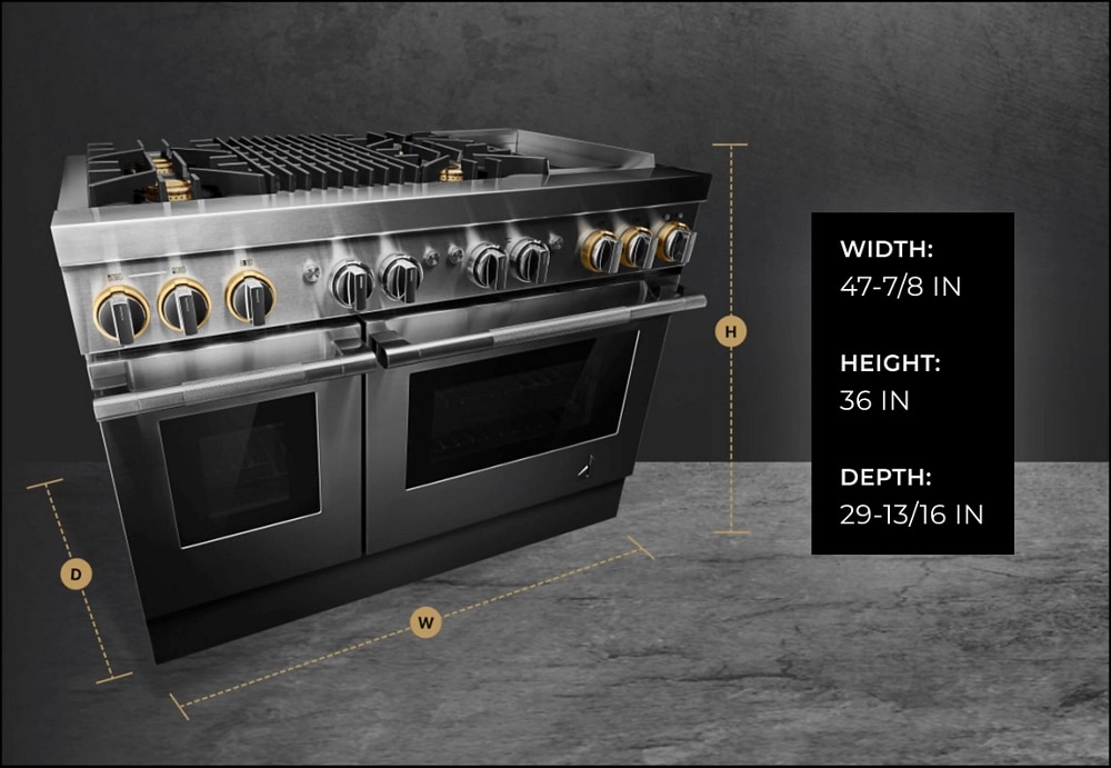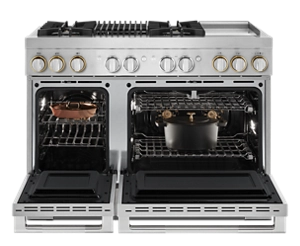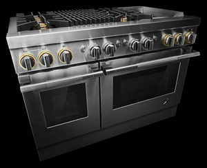 Precise, dual flames produced by precision-drilled brass burners. Inside the oven cavity, steady heat weaves around each flat tine. From searing select cuts and simmering sauces to succulent roasts, these ranges offer unmistakable firepower.