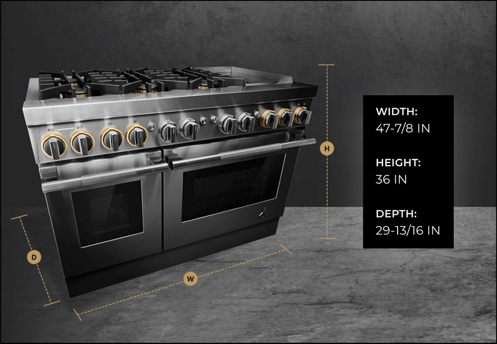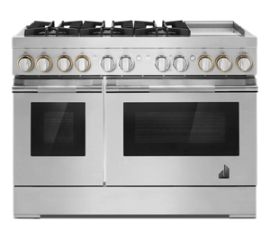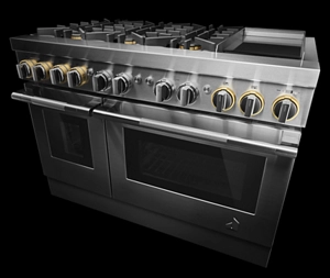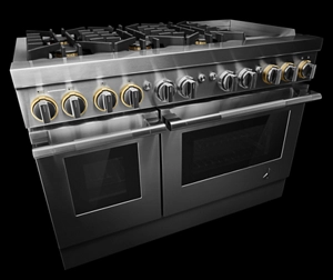 Precise, dual flames produced by precision-drilled brass burners. Inside the oven cavity, steady heat weaves around each flat tine. From searing select cuts and simmering sauces to succulent roasts, these ranges offer unmistakable firepower.