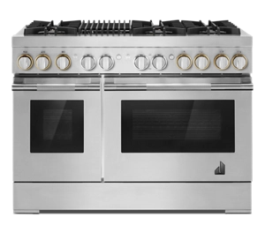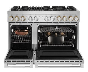 Precise, dual flames produced by precision-drilled brass burners. Inside the oven cavity, steady heat weaves around each flat tine. From searing select cuts and simmering sauces to succulent roasts, these ranges offer unmistakable firepower.