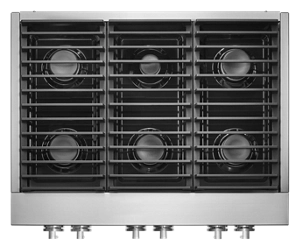 Robust geometric grates form one graceful surface, crafted to withstand heavy woks and cookware.