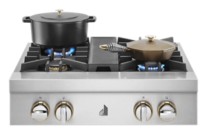 This 20,000 BTU dual-stacked PowerBurner can handle high-powered cooking while still being gentle enough for delicate simmering with turndown of 1,650 BTU.