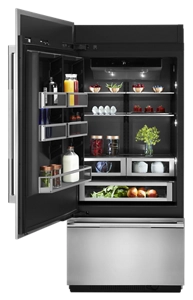 Featuring the exclusive Jenn-Air® Obsidian interior, this bottom-freezer refrigerator offers a fully flush, fully integrated design, distinct fresh- and frozen-food climates, and Produce Preserver to help keep fruits and vegetables at optimum freshness.