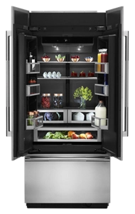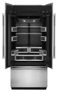 Featuring the exclusive Jenn-Air® Obsidian interior, this bottom-freezer refrigerator offers a fully flush, fully integrated design, distinct fresh- and frozen-food climates, and Produce Preserver to help keep fruits and vegetables at optimum freshness.