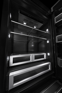 Illuminate food items against the Daring Obsidian Interior. Breathtaking Multi-Point Cinematic Lighting ramps up in intensity as you open the door to increase visibility and highlight your ingredients.