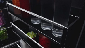 Each drawer, shelf and door bin in the refrigerator is made of solid glass and metal that is naturally odor-resistant. To hell with cheap plastic in luxury door bins, shelves and liners.
