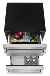All access. Two smooth close drawers with daring Obsidian interiors bring cool where you need it, whether in the undercounter space of a butler's pantry, prep area, bar or entertainment room. Set independent temperature zones with presets curated to your lifestyle and your space.