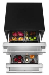 All access. Two smooth close refrigerator drawers with daring Obsidian interiors bring cool where you need it, whether in the undercounter space of a butler's pantry, prep area, bar or entertainment room. Set independent temperature zones with presets curated to your lifestyle and your space.