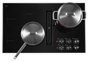 This Jenn-Air® luxury electric radiant downdraft cooktop offers a sleek cooking surface with five radiant elements, which offer responsive performance. It also features the impressive JX3™ downdraft ventilation system, which quickly and efficiently clears the air without a hood.