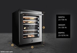Let temptation flow. Behind a dark thermal glass door, marquee lighting exposes every label of your private reserve. Up to 45 carefully cradled, precisely chilled bottles wait for the moment you give in. Twist. Pour. Drink deep.