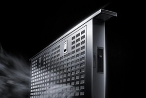 The telescoping downdraft ventilation’s slim profile takes up minimal space on a countertop or island.