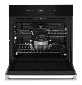 The oven’s single-fan MultiMode® Convection system transforms prepped food and ingredients into delicious dinners. Use My Creations mode to curate your own recipe presets on the full-color display for an intuitive, guided culinary experience that’s quieter than the leading luxury wall oven brand.* *Among 30"", non-steam, single wall ovens.